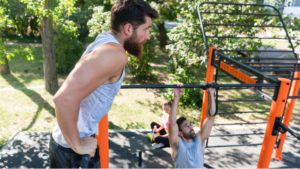 - Prisitraukimai 3xMAX (Jeigu nepadarote nei vieno prisitraukimo darykite prisitraukimus treniruoklyje, arba vieną koją padėkite ant suoliuko ir prisitraukinėkite su koja padėta ant atramos taško)